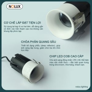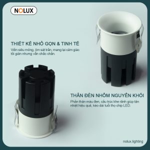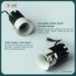 Góc chiếu: 10/15/24/36/55. Thân nhôm đúc màu đen, Chóa và mặt đèn liền khối (đen hoặc trắng).